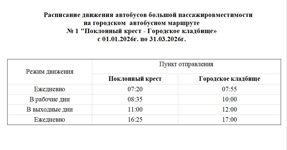 Стоимость проезда на городском автобусном маршруте «Поклонный крест-Городское кладбище» 35 рублей за одну поездку независимо от расстояния.