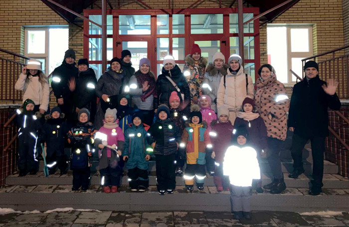 Дети из групп №10 «Нехворайки» и группы №13 «Открыватели» вместе со своими родителями приняли участие в акции «Мы яркие». Они сумели собраться в вечернее время после работы и сделать общую фотографию вместе с детьми, показав тем самым, каким «заметным» должен быть пешеход в темное время суток.