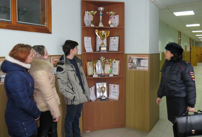 Совместно с инспектором отделения по делам несовершеннолетних Л.Г. Ивлевой и членом Общественного совета при МО МВД Л.В. Гамаюновой студенты посетили межмуниципальный отдел МВД России по ЗАТО г. Радужный, где их встретил временно исполняющий обязанности начальника МО МВД – начальник полиции А.В. Колесов. Гостей провели по отделу, где начали познавательную экскурсию с дежурной части, познакомив с организацией ее работы. Также экскурсанты в подробностях узнали о служебной деятельности сотрудников подразделений участковых уполномоченных полиции и уголовного розыска, отделения экономической безопасности и противодействия коррупции, следственного отдела, экспертно-криминалистического центра. В заключении ребята, под четким руководством полицейских, попробовали себя в сборке и разборке табельного оружия.