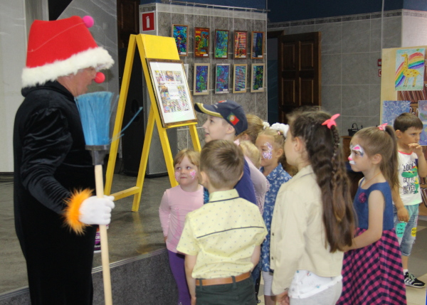 В ЦДМ «На празднике детства» руководитель детской студии дизайна Татьяна Стрелкова вместе со своими учениками и их родителями провела для детей творческие мастер-классы и устроила выставку работ юных художников. Дети рисовали, занимались аппликацией. Татьяна Валерьевна разрисовывала детвору в технике аква-грим. Хороший заряд бодрости и веселья получили юные радужане от забавного персонажа, художника Каляки-Маляки, роль которого, как всегда вдохновенно, исполнил М.П. Васильцов.