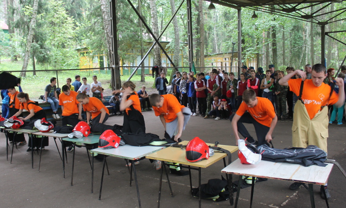 В практическую часть организаторы полевого лагеря включили конкурс завязывания пожарных узлов и одевания боевой одежды пожарного на скорость.