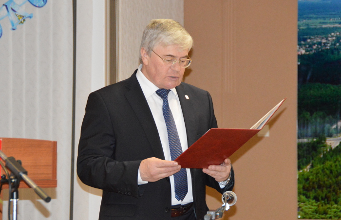 Так и в этот день по итогам 2015 года были отмечены 4 сотрудника администрации. Почетную грамоту администрации Владимирской области С.А. Найдухов вручил заместителю председателя муниципального казённого учреждения «Комитет по культуре и спорту» ЗАТО г. Радужный Николаю Константиновичу Парамонову.