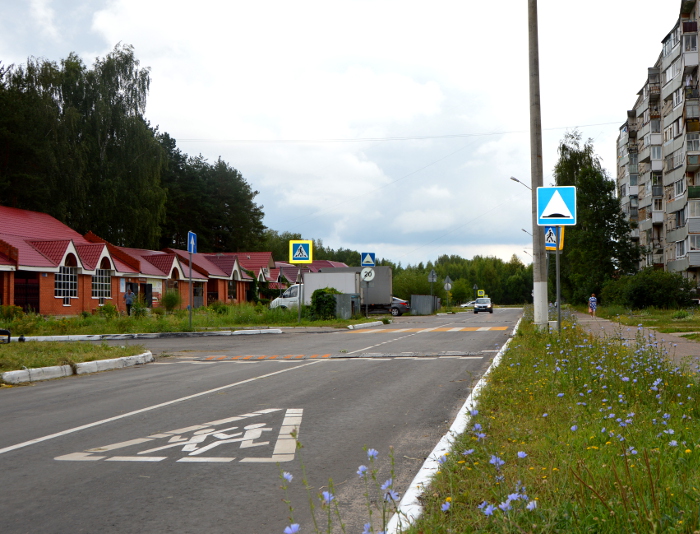 Приближается к завершению ремонт межквартальной полосы, её узкой и широкой части. Люди радуются ровной дороге и красивой яркой разметке. Появились дополнительно «искусственные неровности» возле пешеходных переходов и знаки «Дети» в качестве разметки прямо на асфальте.