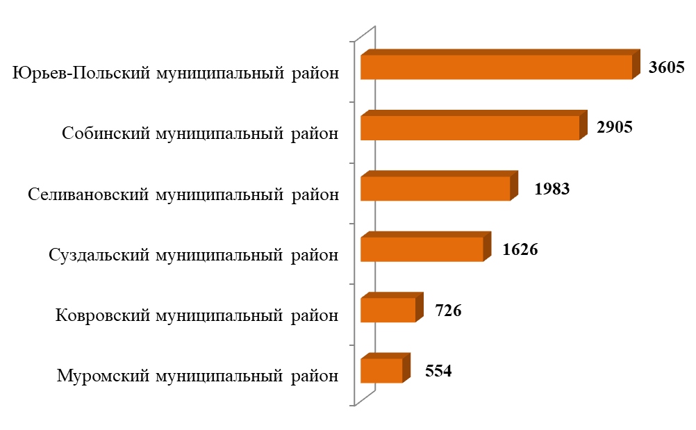 Так, например, большая часть внесенных минеральных удобрений пришлась на Юрьев-Польский (2389 тонн), Суздальский (1896 тонн) и Меленковский (1860 тонн) муниципальные районы, меньше всего – на округ Муром (98 тонн).
