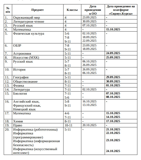 В период с 18 сентября по 28 октября 2025 года пройдёт школьный этап ежегодной всероссийской олимпиады школьников. В нём смогут принять участие обучающиеся 4-11 классов общеобразовательных организаций ЗАТО г. Радужный.